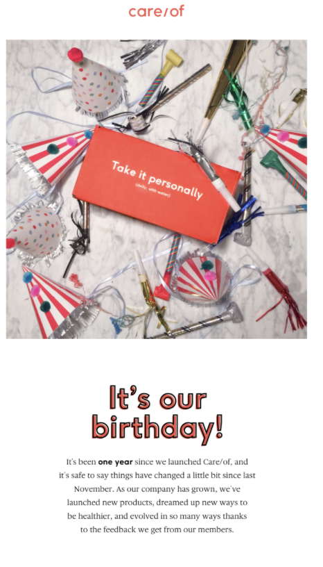 Care/of celebrated their first anniversary with a round-up of all the products they launched, the progress they’ve made and the things they’re most proud of. It certainly adds a personal touch to a brand’s image!