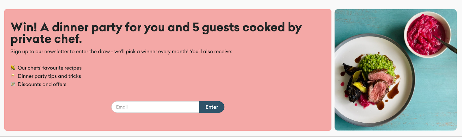 Here’s another great example from one of our customers. Nomad Cooks have managed to grow an email audience of 1,100+ subscribers just by running a giveaway. They promoted it with a website pop-up form and a dedicated landing page where users could subscribe and enter to win. They even posted organic social media posts on Facebook and Instagram and paid Facebook ads.