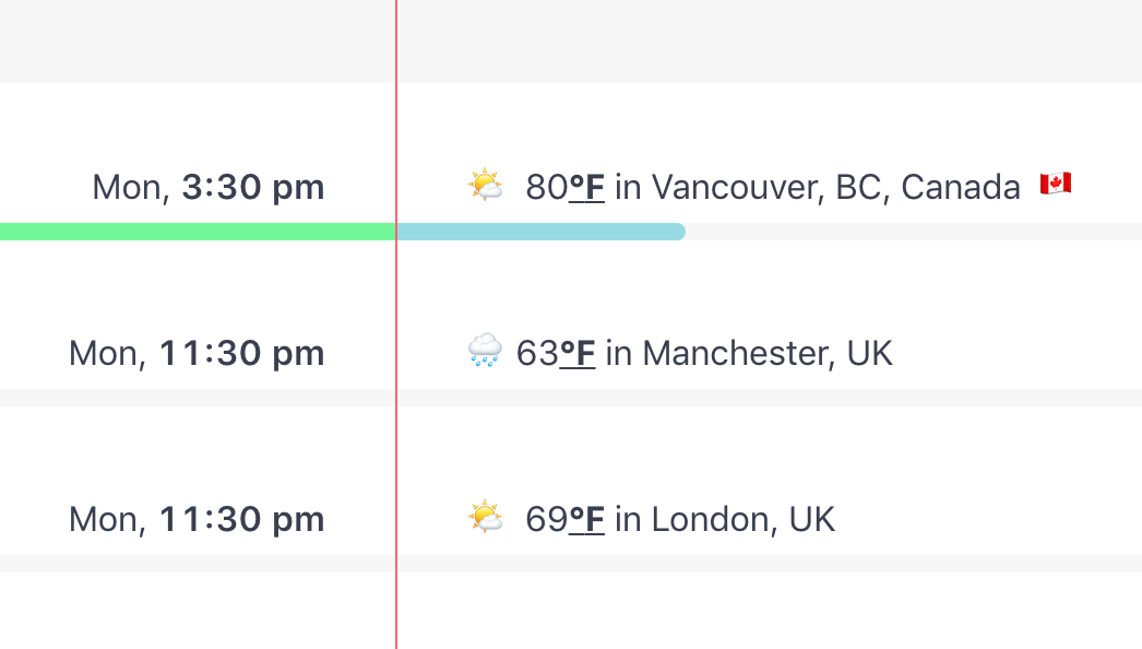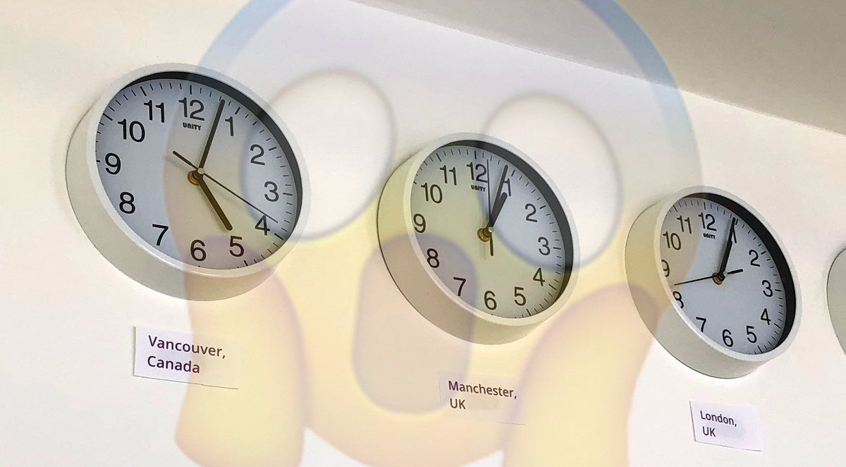 Slack keeps us talking throughout the day and the updates feature is useful for showing where we are at any given time. Geekbot manages our daily standups on Slack and lets me know if there are any blockers. And Spacetime – a handy Slack plugin – makes it easy to see the time in our different locations. (It shows the weather, too: sadly for Ben, it seems to always be raining in Manchester.)