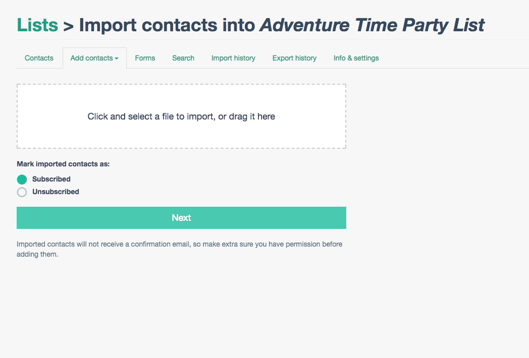 The first of these is the ability to select whether the list of contacts you are importing on to the list are those who are subscribed to the list or those who are unsubscribed. Thus, allowing you to transfer your unsubscribed users as well and storing their contact information.