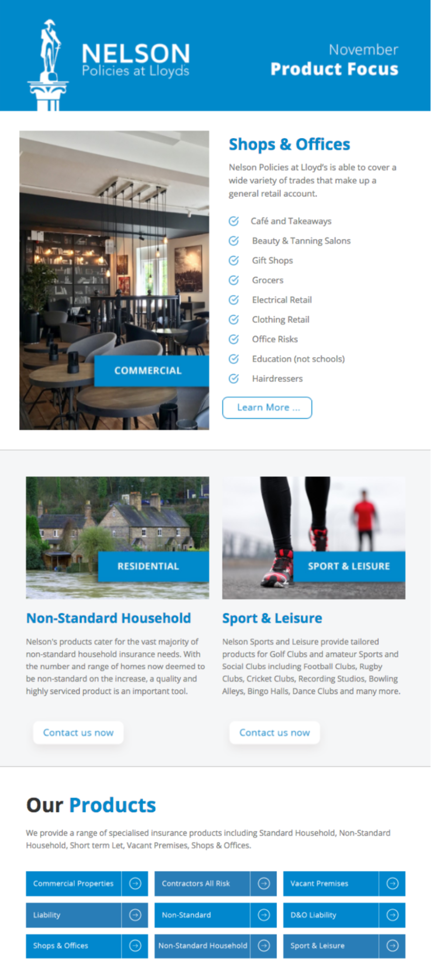 For example, Nelson Policies uses a simple product categorisation, compelling images, copy, and CTAs, so that readers can understand at a glance what this company is all about. Nailing these elements is vital to generate leads and capture users’ attention.