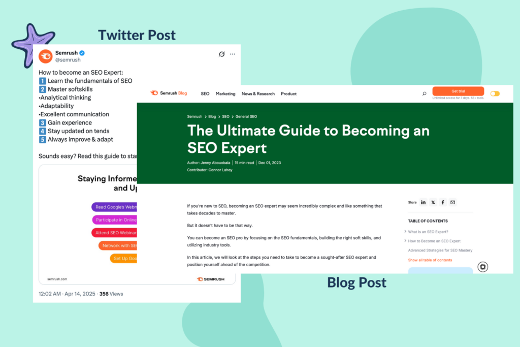 For example, a blog can be converted into a short video for TikTok, X (formerly known as Twitter) thread, and an infographic for Pinterest. By doing this, you’ll ensure that your content reaches your target audience in various formats, gaining more traction as everyone enjoys consuming content in different ways.