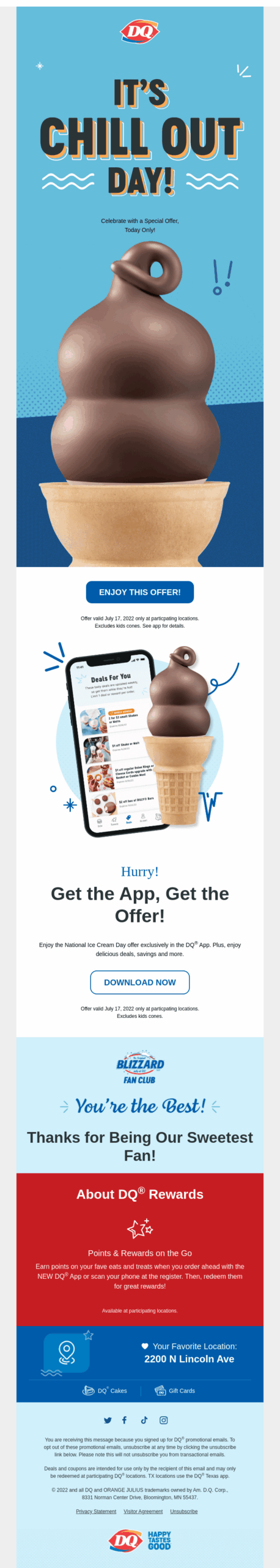 People love desserts and ice cream; one just needs to motivate them enough to go and buy one. Dairy Queen uses “National Ice Cream Day” to do exactly that. By offering special discounts, they make the decision to treat yourself even easier.
