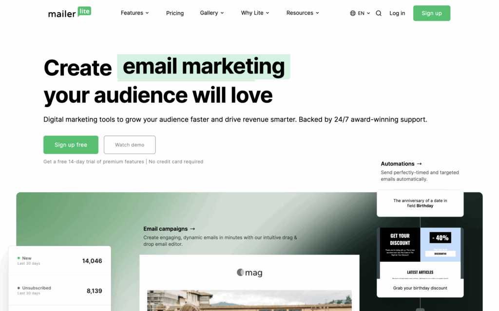 MailerLiteEasy to use and features a comprehensive landing page builder
