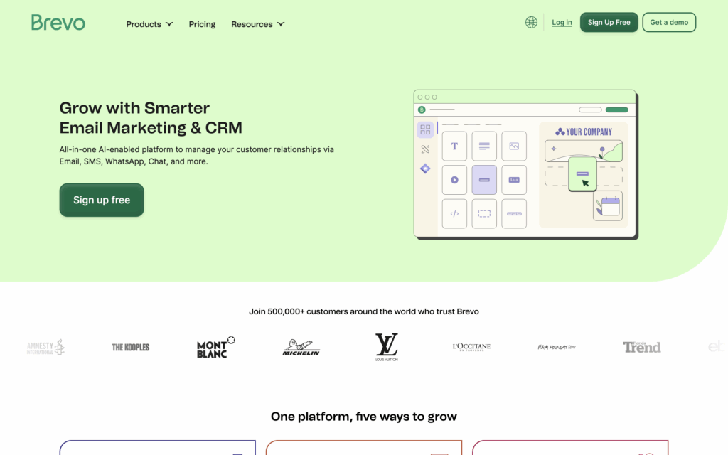 Brevo (previously called Sendinblue) is a CRM Suite that started as an email marketing service. Later, it added new features like CRM, transactional emails, and a live chat tool similar to Intercom.