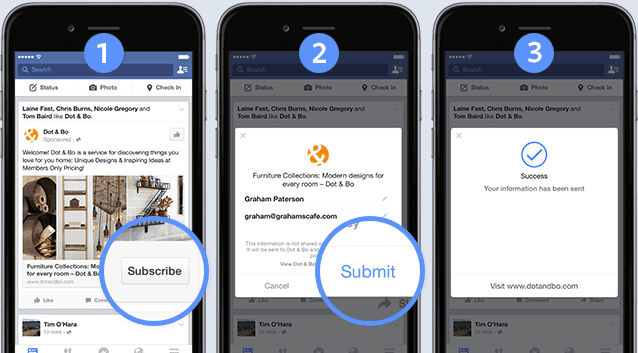 The forms are pre-populated with the details Facebook knows about the user – such as their name and email address – making it even quicker and easier for people to connect with you and your business.