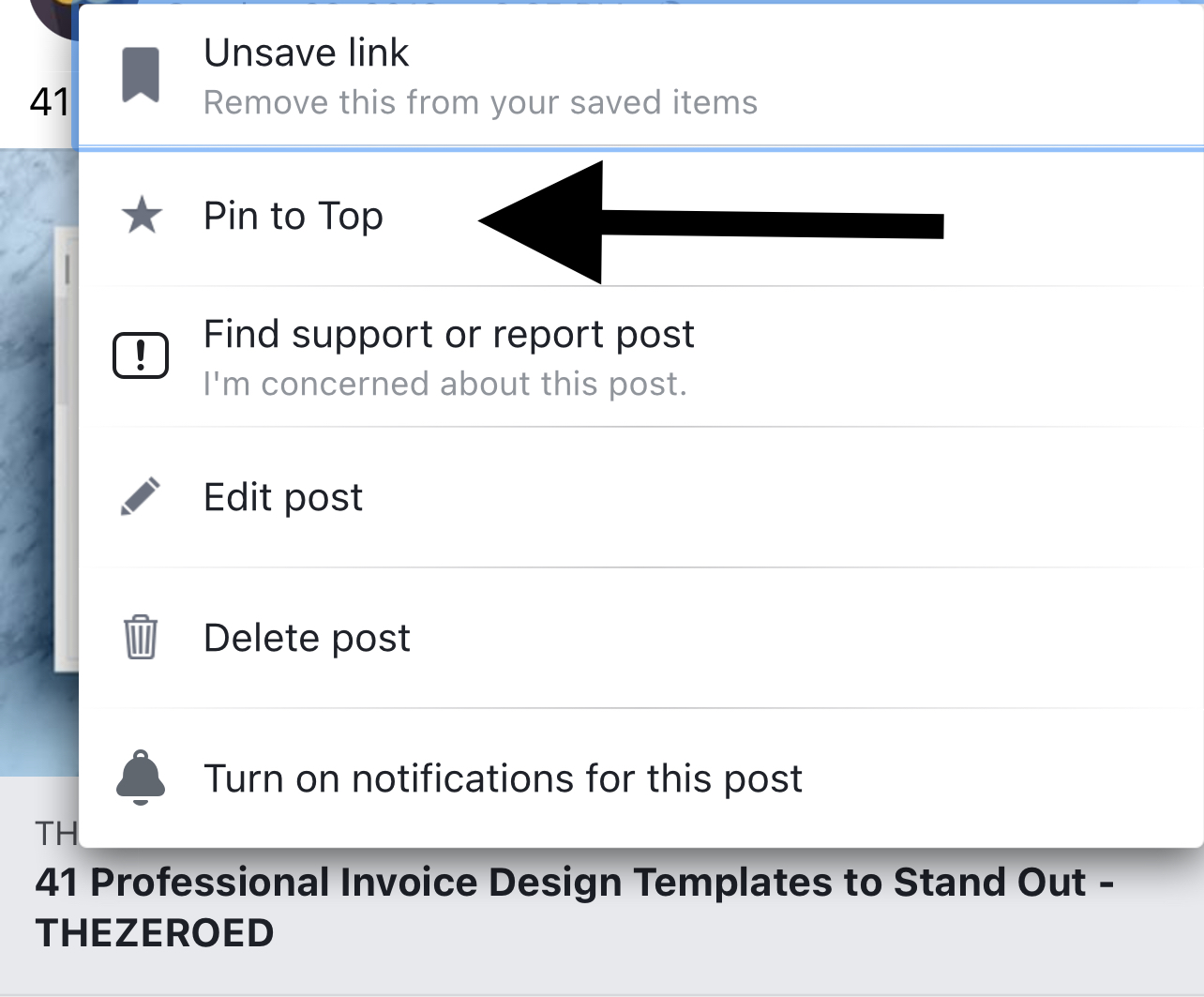 To pin a post, click the three dots in the top right corner of the post and then select ‘Pin to Top.’