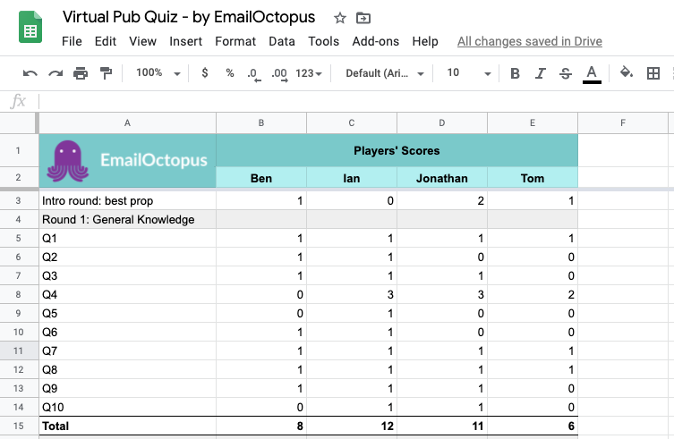 Our Complete Virtual Pub Quiz Toolkit includes a templated scoring sheet for you to copy and use.