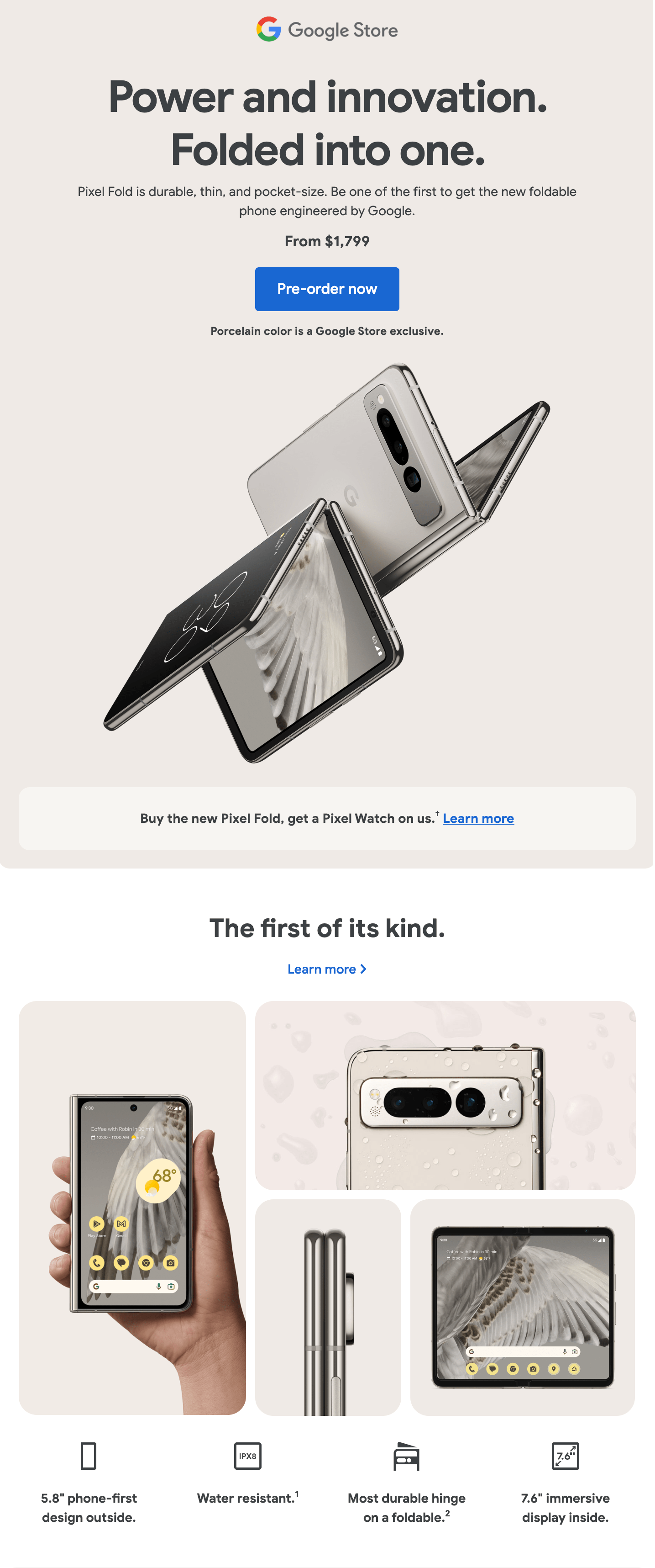Another great product launch email example is from Google announcing the launch of their new mobile device.