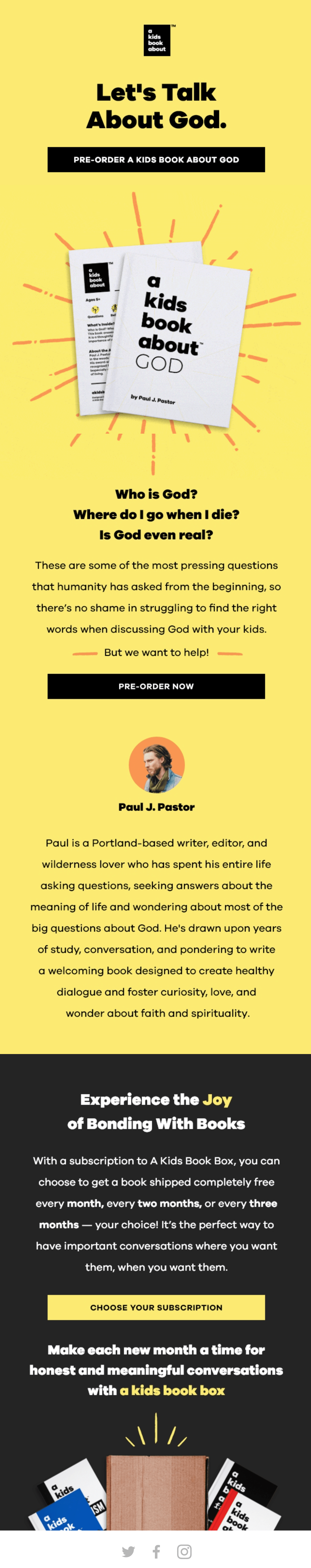 Here’s a book release and pre-order email by an online book retailer named “A Kids Co.”