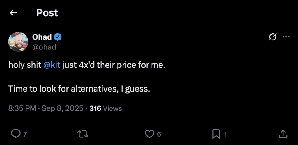Kit’s new plan has a ~$10-20/month price increase, which is a bit steep, as it’s almost a 35% price hike for their entry-level plans. It for sure is going to hit many small creators and businesses who are working on a tight budget.