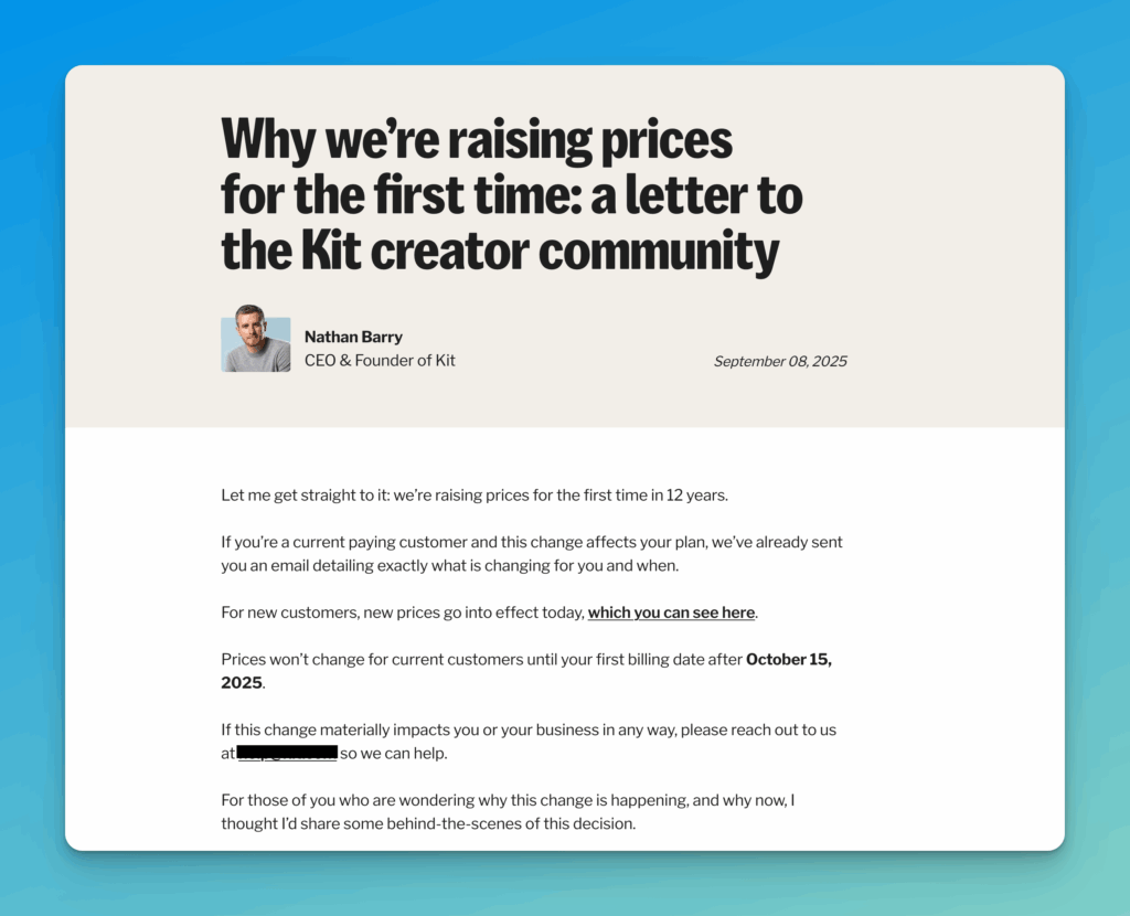 Note: The $10–20/month price increase applies to the Creator plan (Kit’s basic plan). The price increase for the Creator Pro plan is even higher.