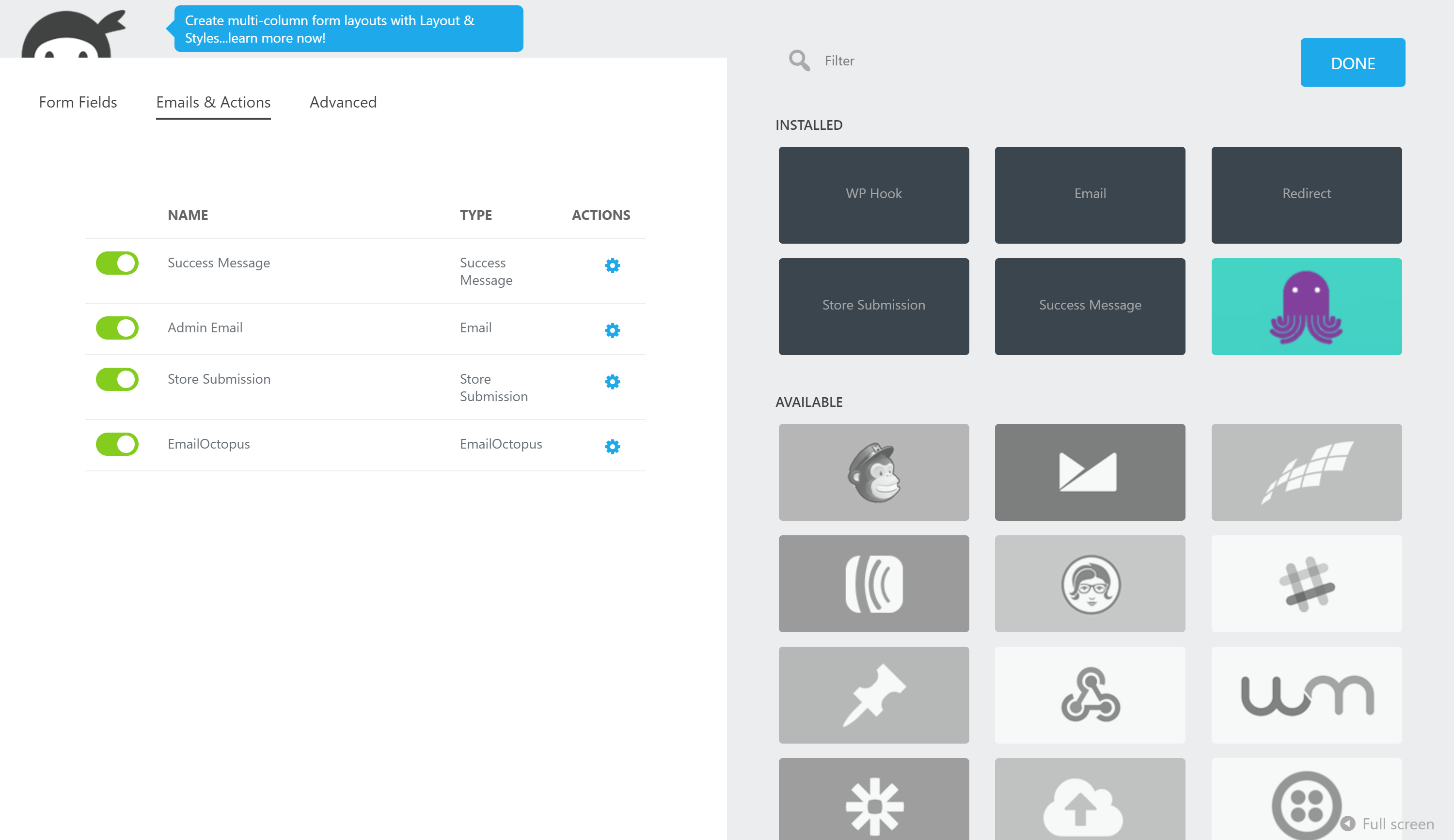 Ninja Forms allows you to create and design sign-up forms for your WordPress website. With nearly 1,000,000 users to their platform they are easily one of the most popular form builders on the market right now.