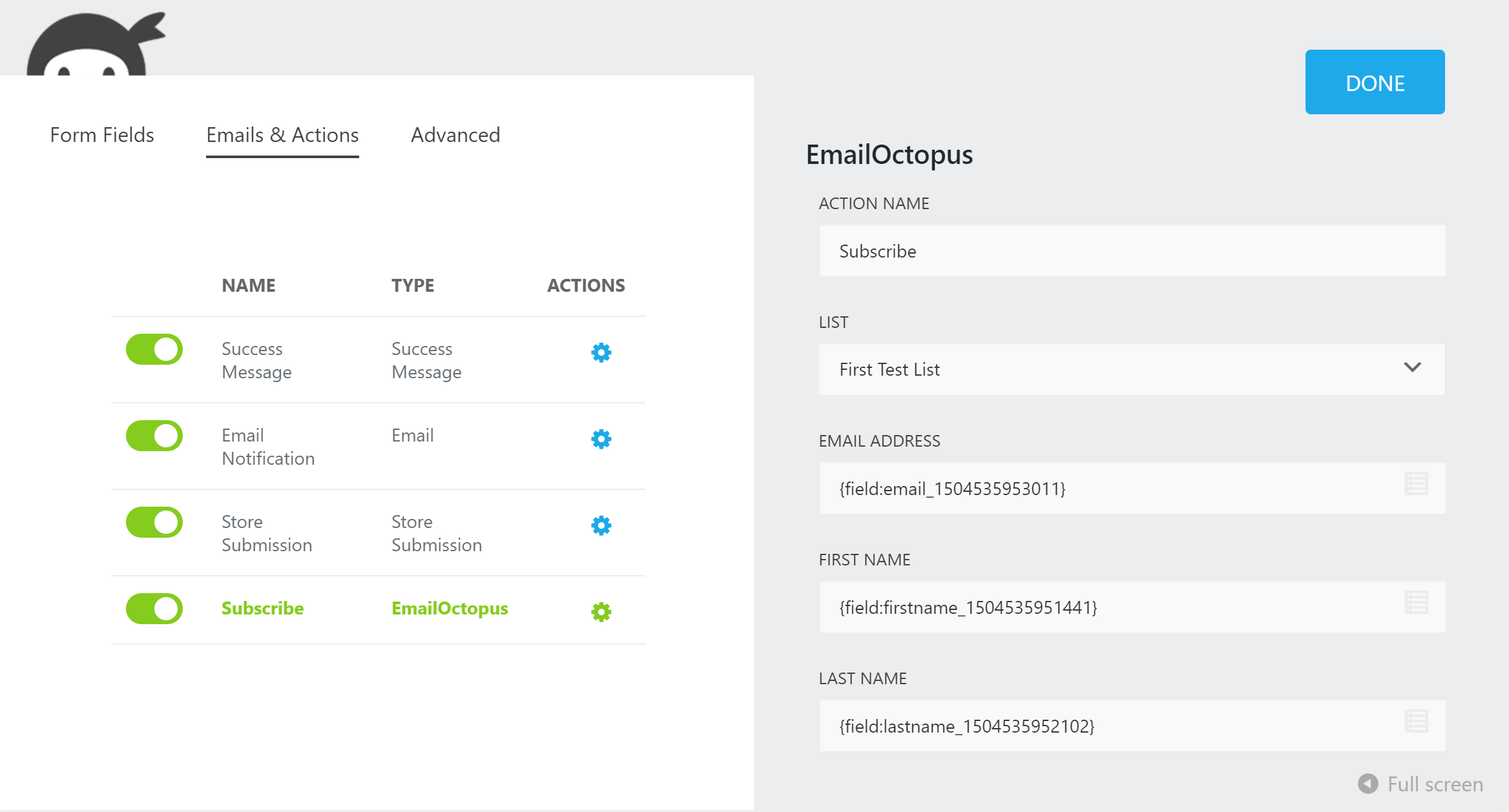 - All the new sign-ups to your Ninja Form will automatically be transferred to your corresponding EmailOctopus list.