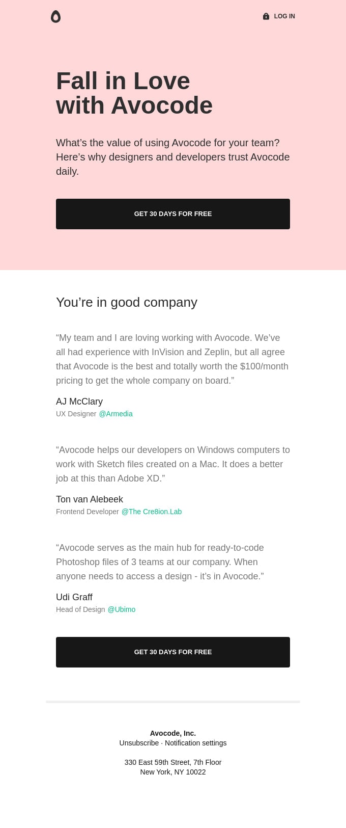 Take a look at Avocode’s order cancellation email template that incorporates a 30-day free trial along with social proof to assist customers’ decision-making process. Going as far as explaining the difference between a free and a paid version will only speed up customers’ returns.