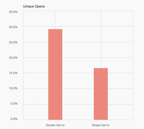 In 2011 Mailchimp sampled 30,000 users to see how engagement stats compared between single vs double opt-in.