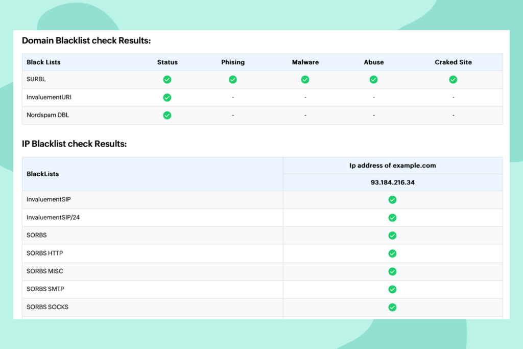 Another reason behind your email landing in spam can be that your domain has been added to a specific blocklist. Many email clients like Gmail and Outlook use these blocklists to block spam emails.