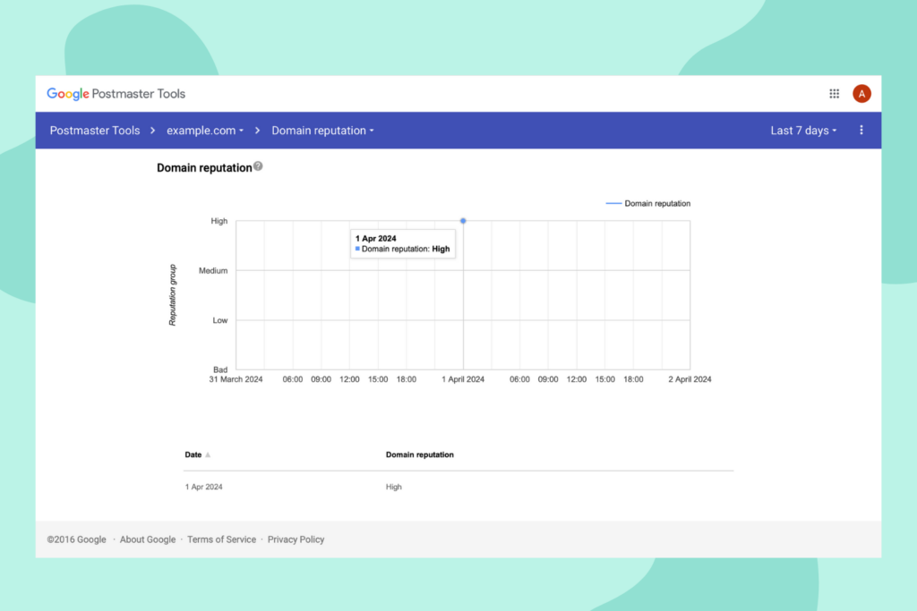 If you’d like to see the score for your domain, you have multiple options. The easiest one is by using Google Postmaster Tools where you need to simply verify your domain to see your sender score.