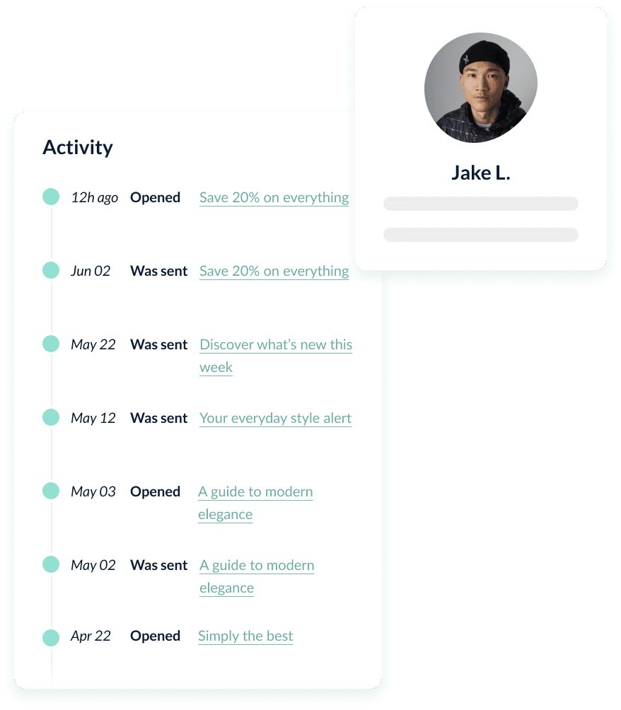 Understand how individual subscribers respond to your campaigns with a historical overview of their activity. Use these insights to segment your audience and tailor your content.