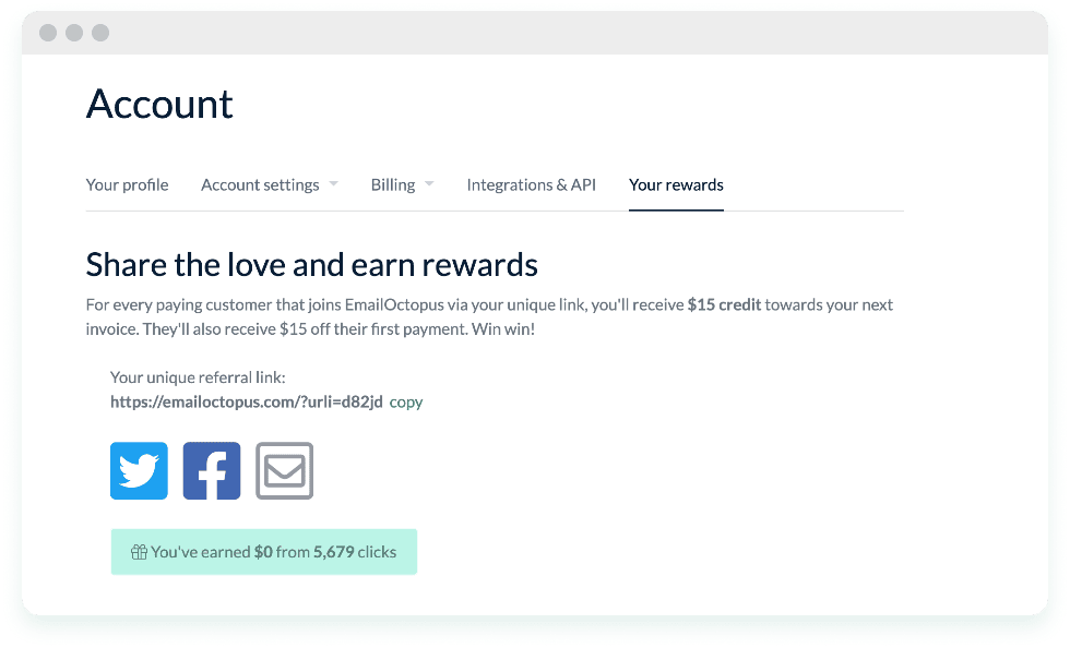 If you love EmailOctopus, tell your friends. You'll both save $15.