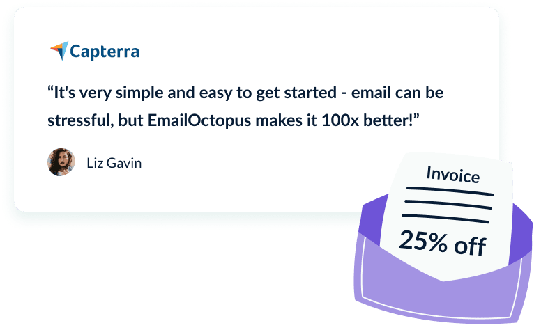 For anyone considering switching to EmailOctopus, hearing from other users helps with that decision. It's why we give you 25% off your next invoice for every one published, up to a maximum of $50 per invoice.